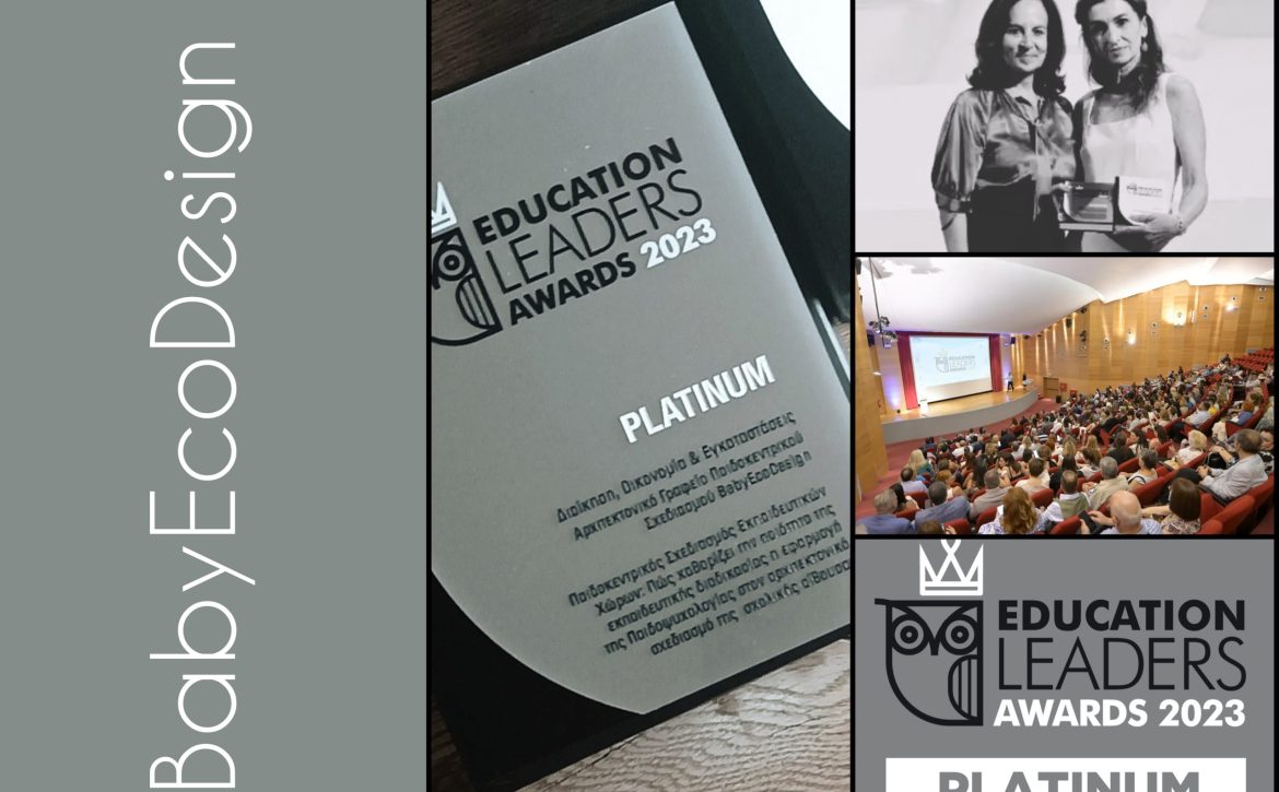 Στα φετινά Education Leaders Awards, που έλαβαν χώρα στο Συνεδριακό Κέντρο Πανεπιστημίου Δυτικής Αττικής στις 3 Ιουλίου, το Αρχιτεκτονικό Γραφείο Παιδοκεντρικού Σχεδιασμού BabyEcoDesign απέσπασε δύο σημαντικά βραβεία.