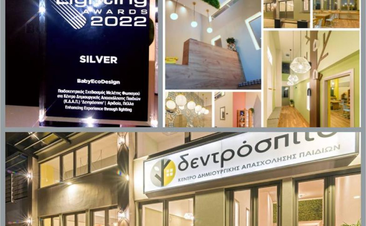 Με αφορμη τη προσφατη βραβευση με SILVER AWARD,  του αρχιτεκτονικου γραφειου παιδοκεντρικου σχεδιασμου Babyecodesign, , (www.babyecodesign.gr),  με την υποψηφιοτητα του ‘Η σημασία του φωτός στους παιδικούς χώρους: Παιδοκεντρικός Σχεδιασμός Μελέτης Φωτισμού στο Κέντρο Δημιουργικής Απασχόλησης Παιδιών (K.Δ.Α.Π.) ‘Δεντρόσπιτο’, Αριδαία, Πέλλα’ στα φετινα  βραβεια Lighting Awards 2022, ας μιλησουμε σχετικα με τη χρησιμοτητα της παιδοκεντρικής προσέγγισης μιας μελέτης φωτισμού, συνδυάζοντας γνώσεις της τέχνης και της επιστήμης του φωτισμού & της παιδοψυχολογίας.