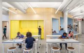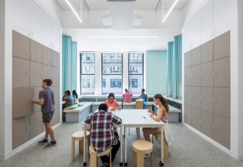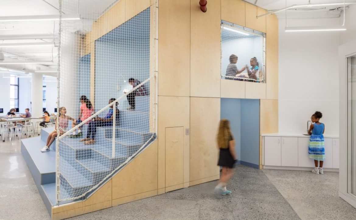 Κυριος στοχος ηταν να δημιουργήσουν ένα περιβάλλον που να είναι “παιχνιδιάρικο, και όχι παιδικό” για αυτό το σχολείο στο Μανχάταν. Το αρχιτεκτονικο γραφειο Α+Ι, ήθελε να αποφύγει τη χρήση στοιχειων, όπως πολλα χρώματα ή τις κλασσικες τοιχογραφίες/διακοσμητικα στοιχεια που συνήθως βρίσκονται στις αίθουσες διδασκαλίας. Το αποτελεσμα μαγικο: χωροι με αρμονια, οπου το ματι δεν ‘σκονταφτει’ σε αχρηστες πληροφοριες.