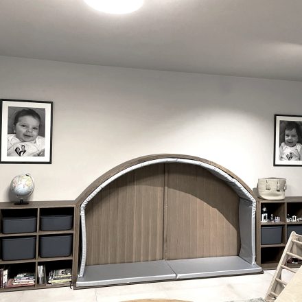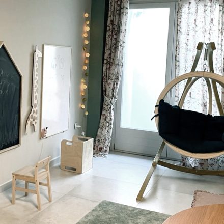 Αφορά έναν ιδιωτικό χώρο παιχνιδιού – Playroom – σε κατοικία στη Σαντορίνη, που περιλαμβάνει διακριτές γωνιές οργανωμένης δημιουργικής απασχόλησης, ελεύθερο χώρο μη οργανωμένου παιχνιδιού, χώρο διαβάσματος & χαλάρωσης, καθώς επίσης και χώρο υποδοχής (που θα μιλήσουμε για τη σημασία του σε επόμενη ανάρτηση).