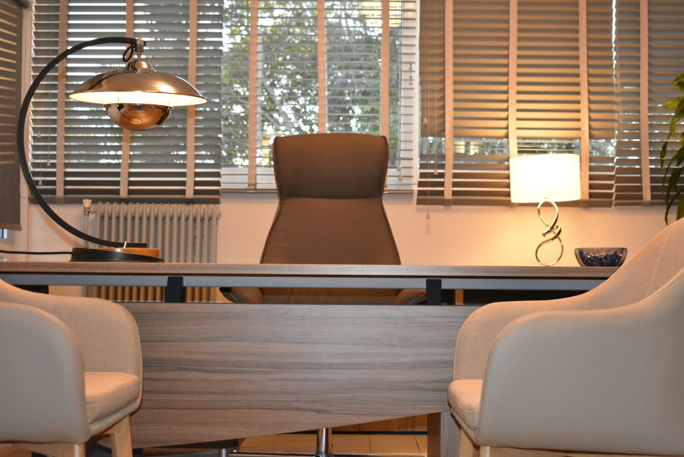 Ένας γραφειακός χώρος, ένας χώρος διεύθυνσης, όπου υποδέχεται τους γονείς με τα παιδιά τους σ’ ένα σχολείο, συνδυάζει δύο διαφορετικές ηλικίες (ενήλικες & παιδιά) και τις διαφορετικές ανάγκες τους, άρα και τις λειτουργίες τους στον χώρο. Θέλει ισορροπημένους χειρισμούς στη διαμόρφωση του χώρου, κατάλληλη διάταξη εξοπλισμού με αρκετό ελεύθερο χώρο, χρώματα, ερεθίσματα, ειδικό φωτισμό, δραστηριότητες για τα παιδιά κ.ά., έτσι ώστε να είναι από μόνος του ένα ζεστό καλωσόρισμα.