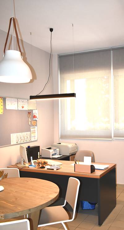 Οι χώροι Διοίκησης σε ένα Εκπαιδευτικό Ίδρυμα αντιμετωπίζονται με διπλές παραμέτρους: από τη μία πρόκειται για χώρους όπου η κύρια λειτουργία τους αφορά γραφεία εργασίας, αλλά συγχρόνως ανήκουν σε έναν εκπαιδευτικό χώρο. Αυτό πρακτικά σημαίνει ότι θέλουμε να έχουμε ένα αποτέλεσμα που να συνδυάζει και τη σωστή λειτουργία του χώρου, αλλά συγχρόνως να παρέχει και ένα αίσθημα ηρεμίας & οικειότητας στα παιδιά, χωρίς να καταφύγουμε σε λύσεις απλοϊκές σε αυτό που ορίζουμε ‘φιλικό προς τα παιδιά’.