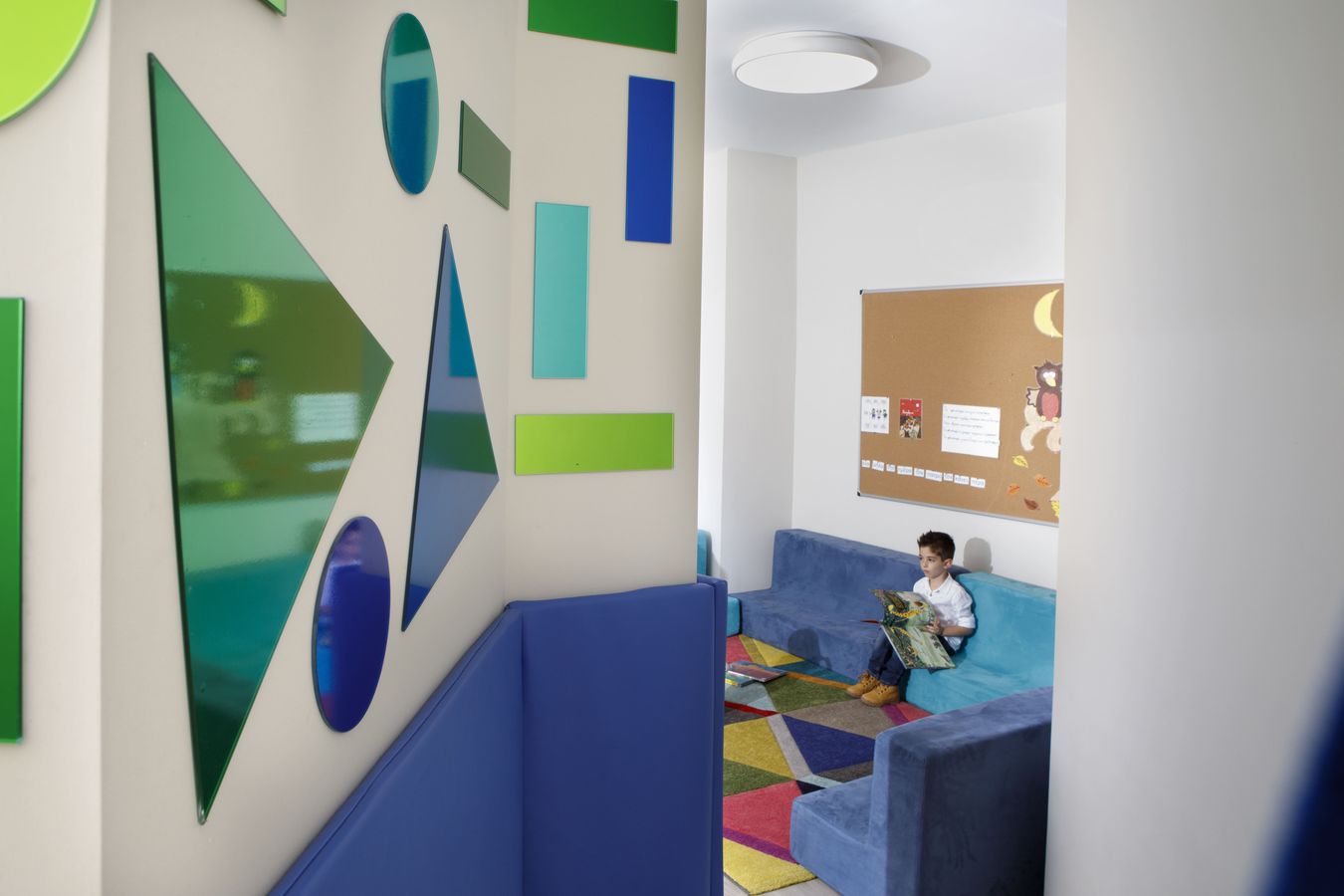 Έπρεπε να δοθεί μια ολοκληρωμένη σχεδιαστική λύση με παιδοκεντρική προσέγγιση σε όλους τους χώρους, νέους & παλιούς και ο μόνος τρόπος ήταν να επιλεχθεί μια & μοναδική παράμετρος. Αυτή που “νίκησε” τελικά, ήταν η “ευελιξία”. Να διαμορφωθούν & να διακοσμηθούν οι χώροι με τέτοιον τρόπο ώστε στη καθημερνή τους χρήση να μπορούν να “μεταμορφώνονται” ανάλογα με τις εκπαιδευτικές ανάγκες, χωρίς όμως να χάσουν την ξεκάθαρη λειτουργία των επιμέρους Τμημάτων (γωνιά χαλάρωσης, γωνιά διαβάσματος, γωνιά δραστηριοτήτων, γωνιά μελέτης κ.α)