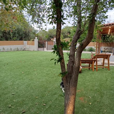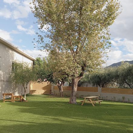 Η δημιουργία ανεξάρτητων γωνιών (χαλάρωσης, δημιουργίας, ελεύθερου παιχνιδιού κ.ά.), η επιλεκτική αγορά εξωτερικού εξοπλισμού παιχνιδιών, σε συνδυασμό με τη μελέτη εξωτερικού φωτισμού, δημιούργησαν ένα αρμονικό αποτέλεσμα για ώρες ξεκούρασης & παιχνιδιού στη φύση.