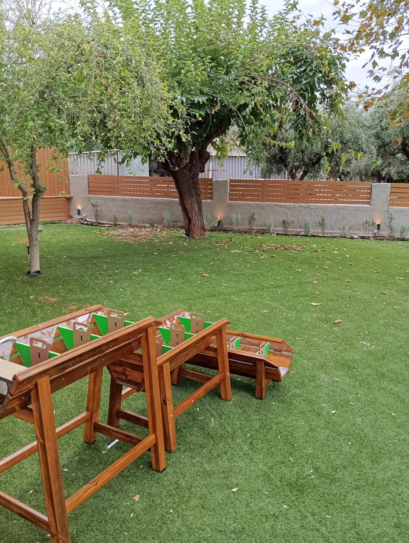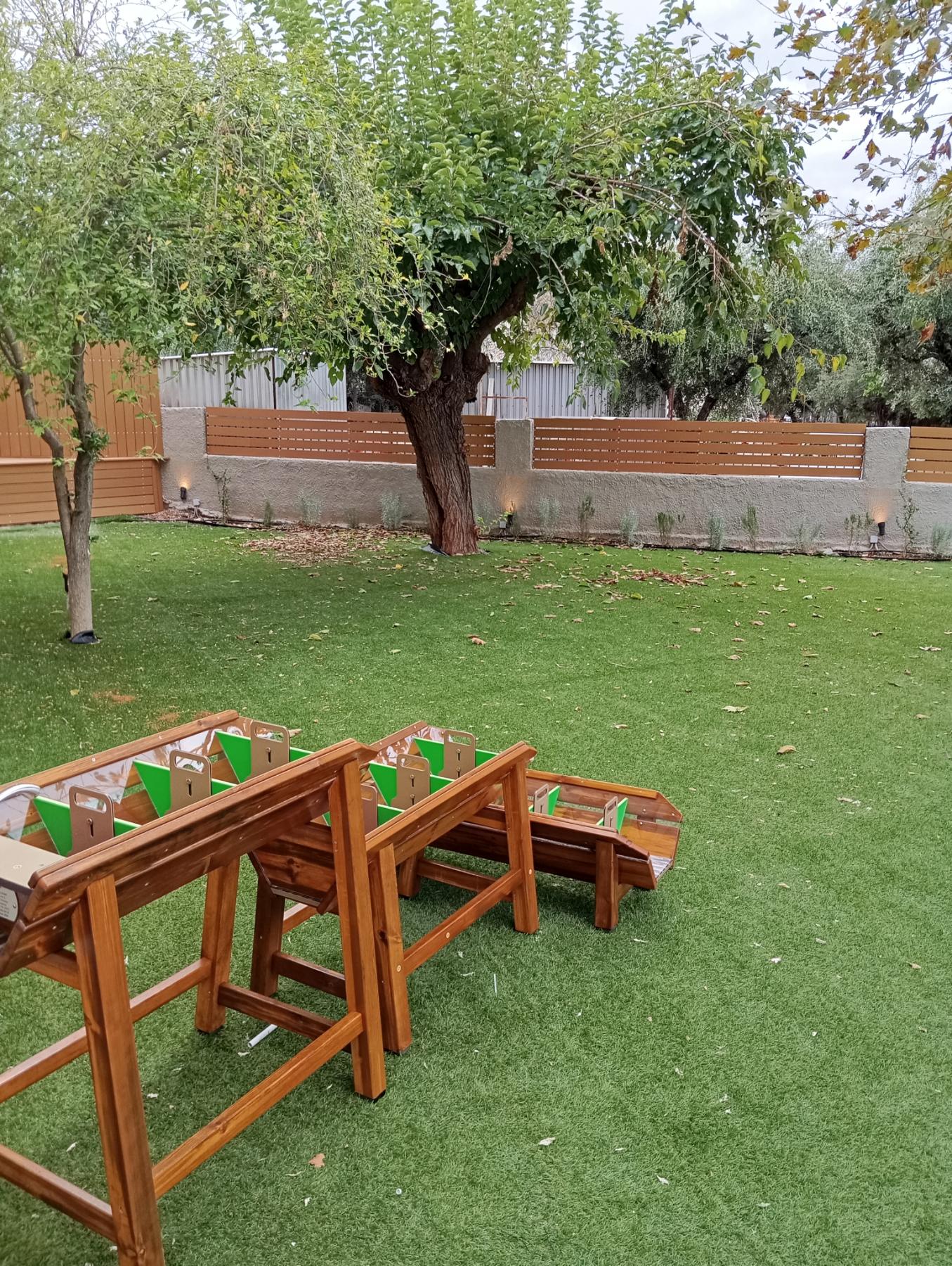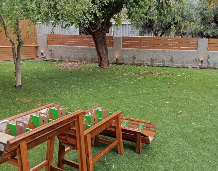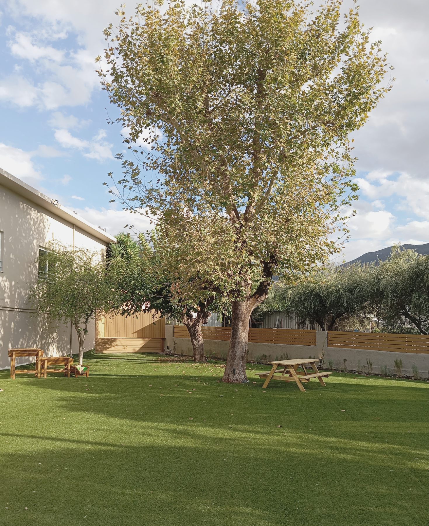 Η δημιουργία ανεξάρτητων γωνιών (χαλάρωσης, δημιουργίας, ελεύθερου παιχνιδιού κ.ά.), η επιλεκτική αγορά εξωτερικού εξοπλισμού παιχνιδιών, σε συνδυασμό με τη μελέτη εξωτερικού φωτισμού, δημιούργησαν ένα αρμονικό αποτέλεσμα για ώρες ξεκούρασης & παιχνιδιού στη φύση.