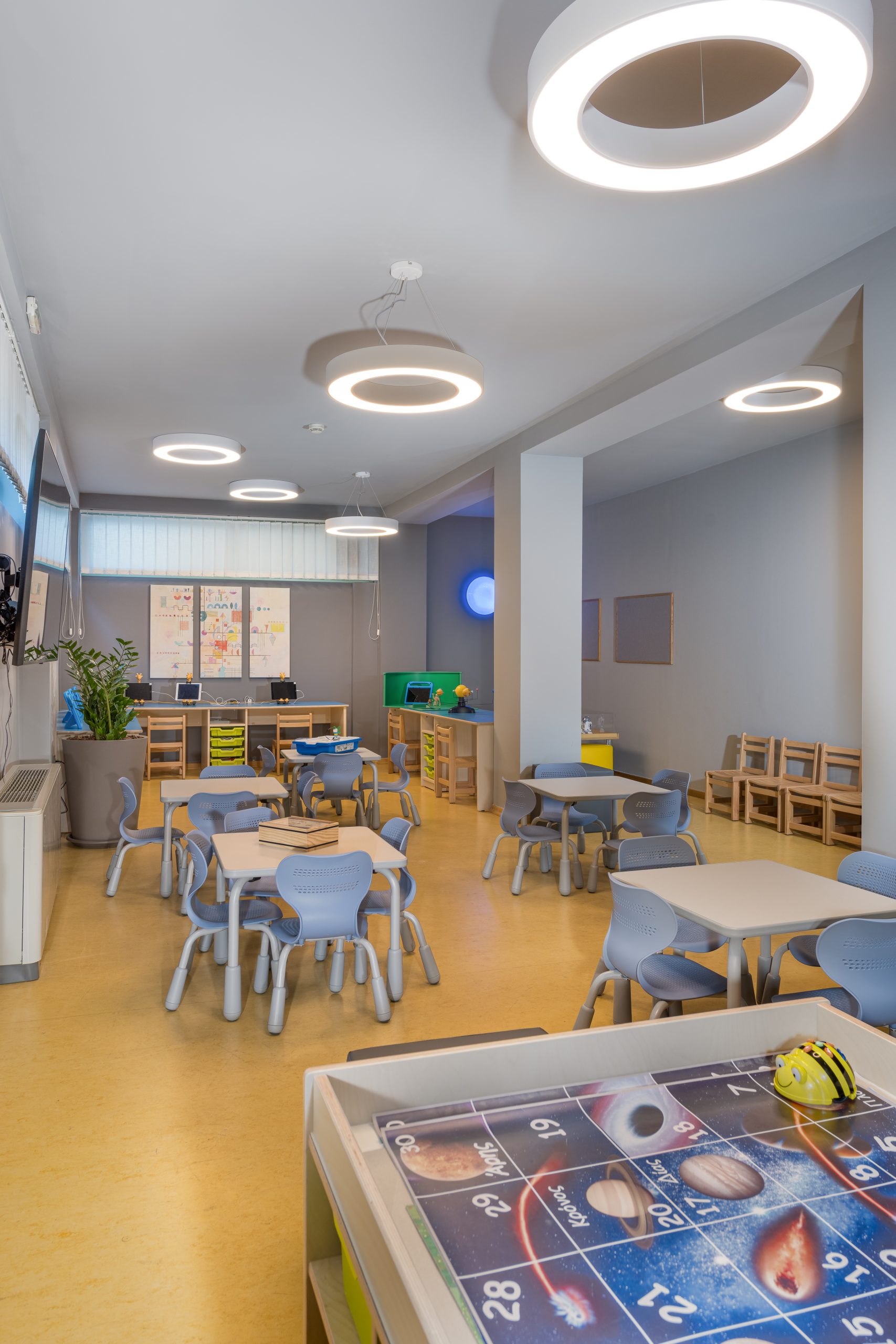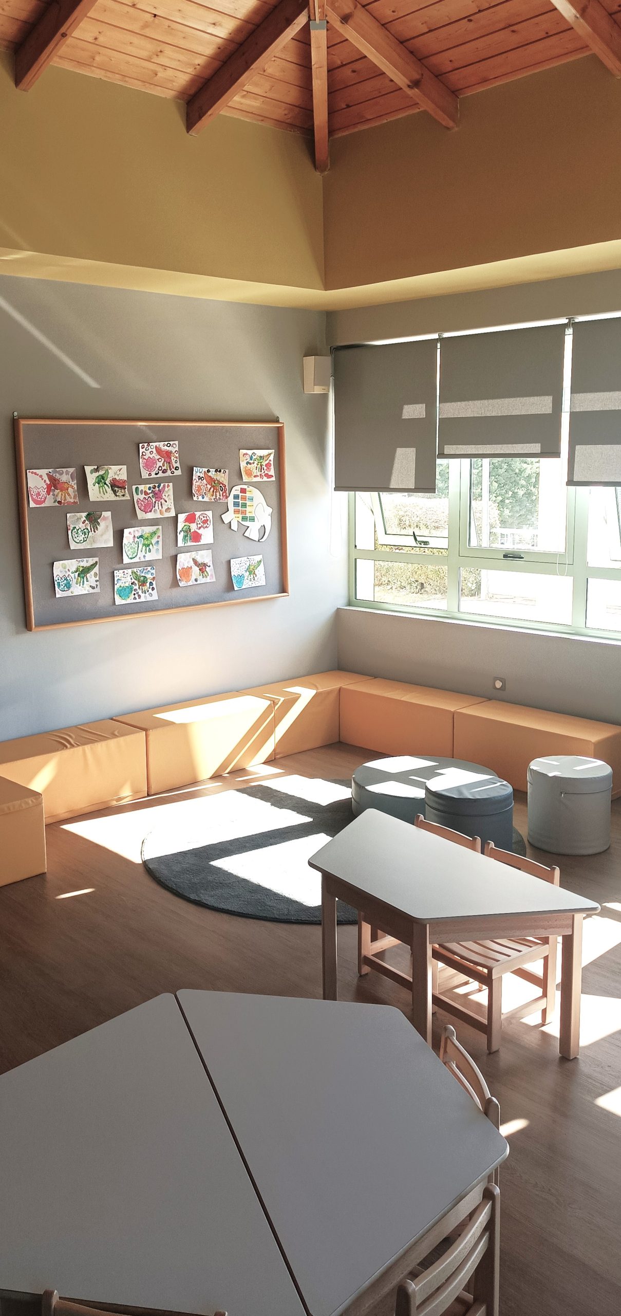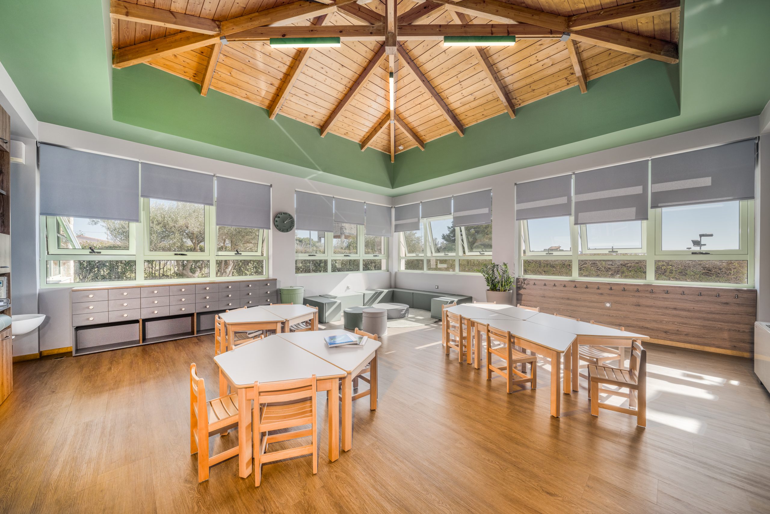 Αναφορικά με τη λειτουργικότητα, η χωρική οργάνωση των χρήσεων παρέμεινε η ίδια και οι αλλαγές πραγματοποιήθηκαν εσωτερικά σε κάθε χώρο, σε επίπεδο εισαγωγής νέων ερεθισμάτων, τεχνητού φωτισμού, χρωμάτων & εξοπλισμού. Αυτό πραγματοποιήθηκε με τον συνδυασμό των κατάλληλων υφών, ηχοαπορροφητικών υλικών, την εισαγωγή κατάλληλου εξοπλισμού & αξεσουάρ, την ύπαρξη φυτών, αναβαθμίζοντας έτσι το μαθησιακό περιβάλλον.
