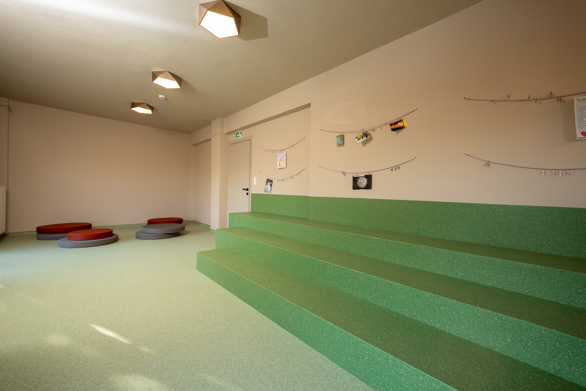 Στο συγκεκριμένο έργο, η δημιουργία ενός μινιμαλιστικού εκπαιδευτικού περιβάλλοντος αναδεικνύει την πρωταρχική ανάγκη των ιδρυτών του: Έλενα Κυριακοπούλου, Βάσια Φωτιάδου και Ανδρέα Φωτιάδη, μαζί με το υπόλοιπο εκπαιδευτικό προσωπικό, να τον αναδιαμορφώνουν μαζί με τα παιδιά, σύμφωνα με τις ανάγκες που θα προκύπτουν από την καθημερινότητα, δημιουργώντας έτσι μια σχέση με τον χώρο καθαρά βιωματική, ισορροπώντας μεταξύ οργανωμένης εκπαίδευσης και ελεύθερου παιχνιδιού.