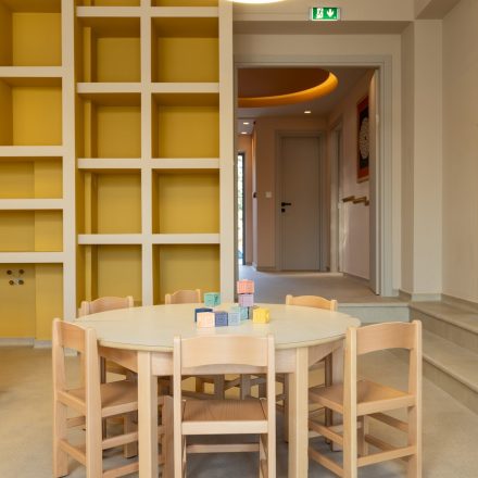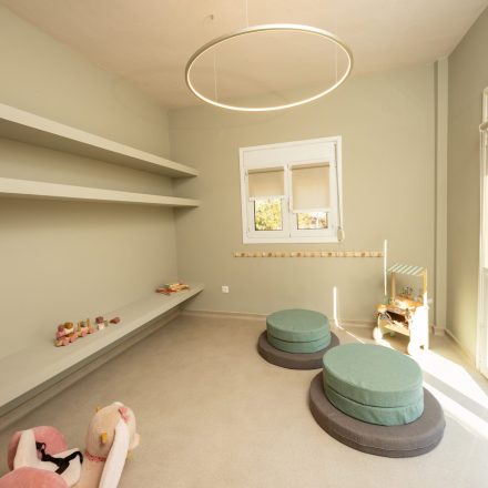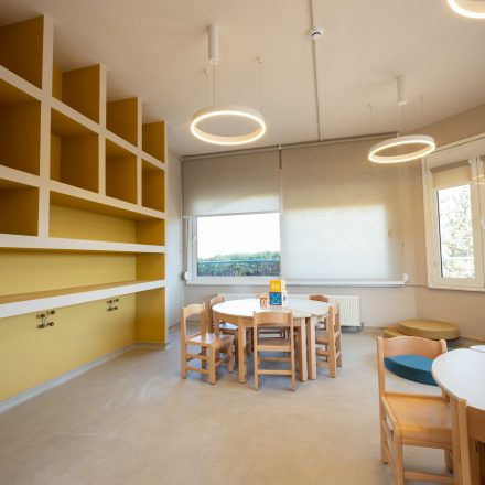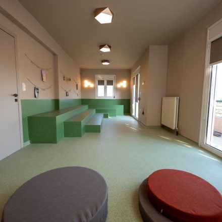 Το έργο αφορά την ανακαίνιση χώρων για χρήση του Βρεφονηπιακού Κέντρου ‘SunnySide’ στη Θέρμη Θεσσαλονίκης, συνολικού εμβαδού 340 τ.μ., σε έκταση 3 στρ., συνολικής διάρκειας έργου 6 μηνών, με αρχιτεκτονική μελέτη εσωτερικών χώρων, αύλειου χώρου και μελέτη φωτισμού, από το αρχιτεκτονικό γραφείο Παιδοκεντρικού Σχεδιασμού BabyEcoDesign.