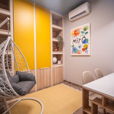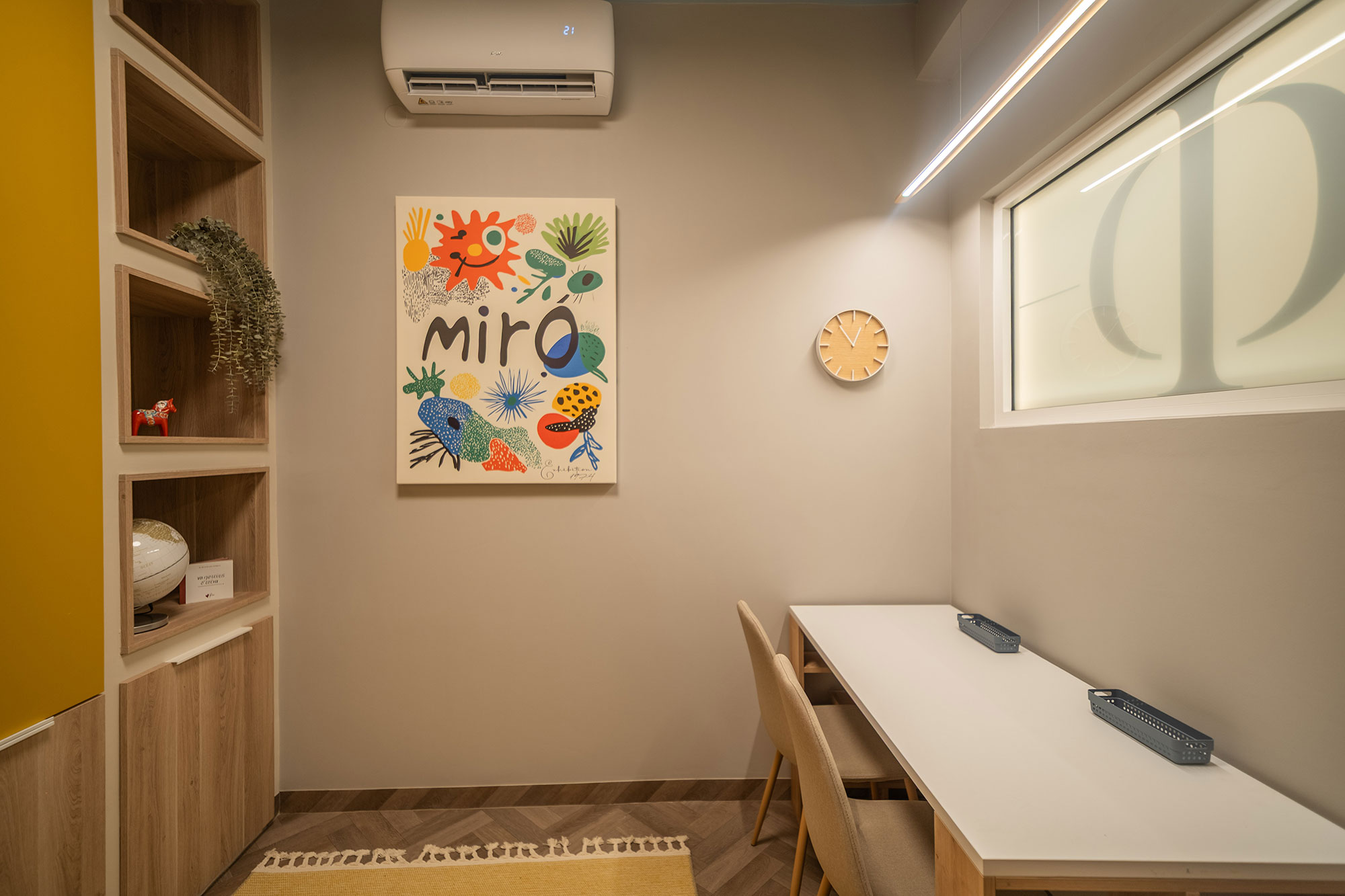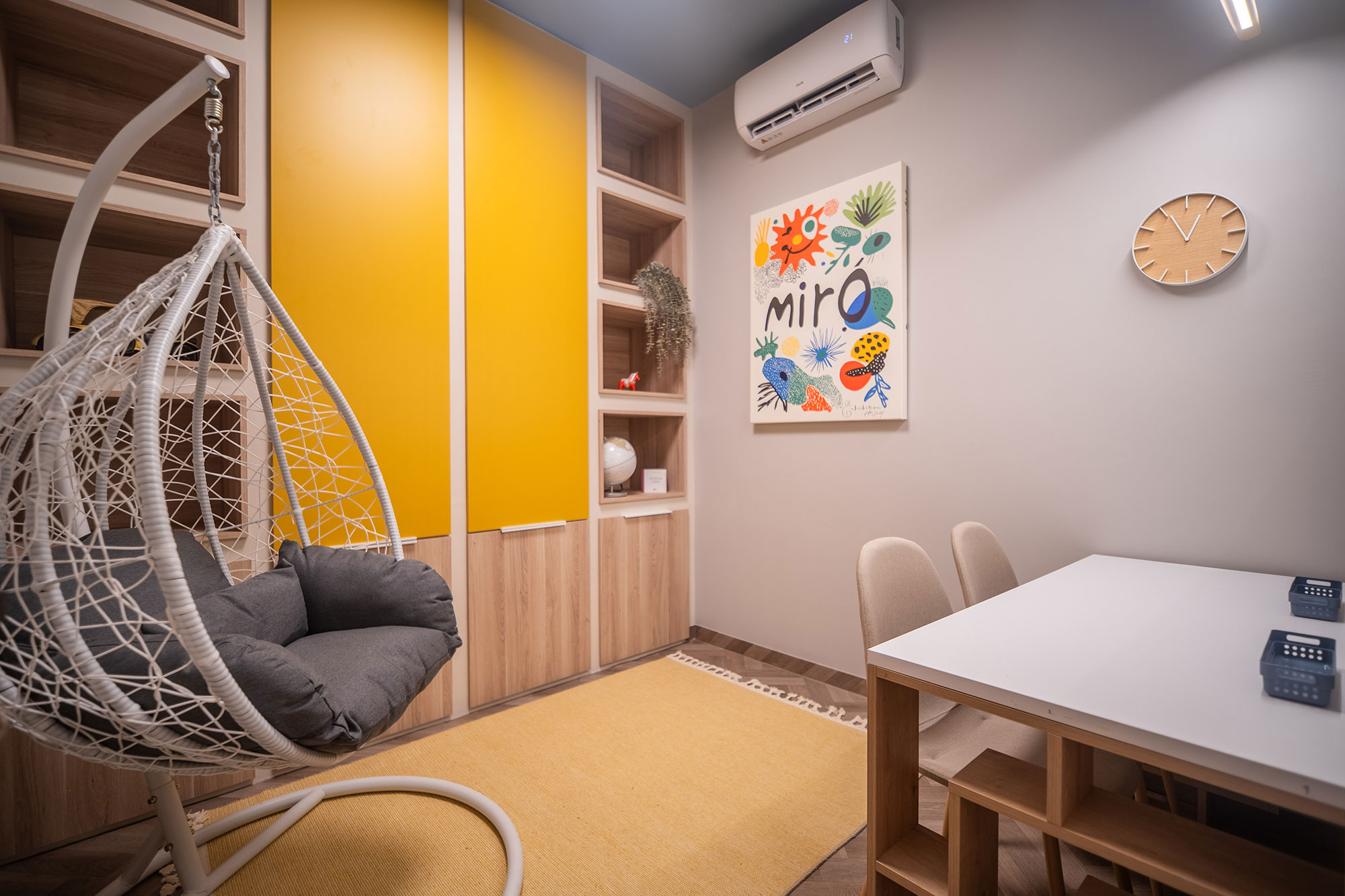 Ο χωρος που ανοιγει τη ψυχη του ενας εφηβος όταν συνδεεται με τον θεραπευτη, επιβαλλεται να ειναι ενας χωρος που προκαλει συναισθηματα ηρεμιας & ασφαλειας. Ο παιδοκεντρικός σχεδιασμος του αρχιτεκτονικου μας γραφειου, προτεινει να εχει τα στοιχεια εκεινα που τουλαχιστον να μην του προκαλουν αποσπαση προσοχης και δυσφορια, αλλα αντιθετως αρμονια και ηρεμια, ωστε να ενισχυσει την ομαλη συνδεση και αντιστοιχη θεραπεια.