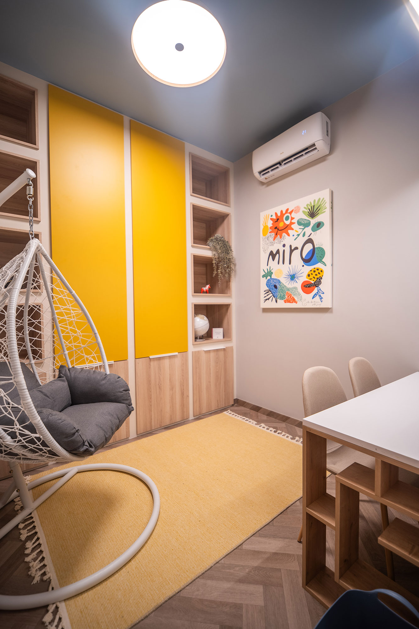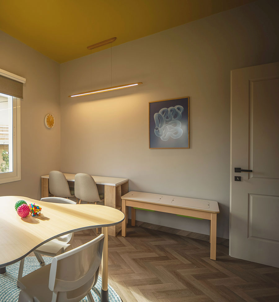 ειδικα σχεδιασμενο χωρο με στοιχεια Sensory Design, o οποιος θα χρησιμοποιειται, ειτε για χωρο αναμονης των παιδιων, αλλα συγχρονως για την αποφορτιση τους.
